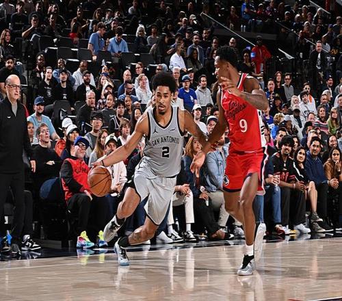 本场比赛中,马刺的替补后场新秀迪伦-哈珀(Dylan Harper)的表现算得上是令人刮目相看。哈珀全场出场25分01秒,投篮12中8,三分线外3中2,罚球1中1,以超高的效率得到了19分2篮板5助攻1抢断的数据,还有2次失误和4次犯规,正负值为+11。哈珀在进攻端展现出了自己全面的得分能力,他有着相当不错的突破能力和终结能力,他也展现出了自己在外线投篮方面的稳定性,而且他在传球和组织方面的表现也是令人眼前一亮的。除此之外,哈珀在防守端的表现也算是中规中矩,也没有出现什么太大的问题。总体来看,哈珀在本场比赛中算是展现出了自己全面的个人能力,并且为球队的这场大胜做出了不小的贡献。